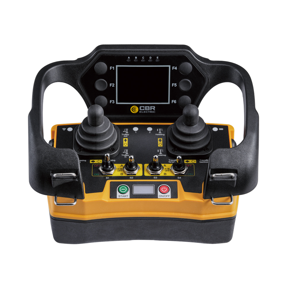 This transmitter is equipped with an emergency stop switch, which can immediately stop all movements and functions of the lifting machinery. The emergency stop function complies with EN13849: 2008cat.3, PL=e standard.