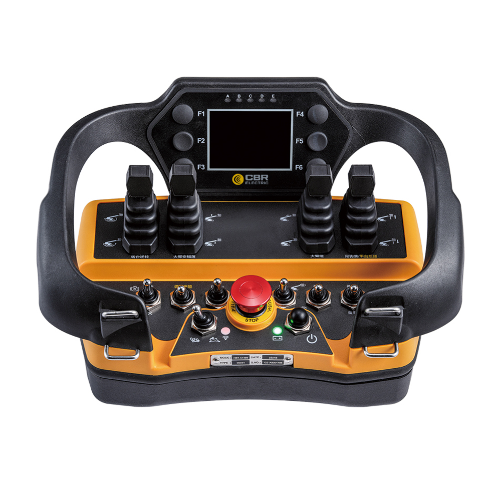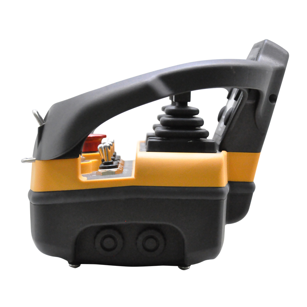 This transmitter is equipped with an emergency stop switch, which can immediately stop all movements and functions of the lifting machinery. The emergency stop function complies with EN13849: 2008cat.3, PL=e standard.