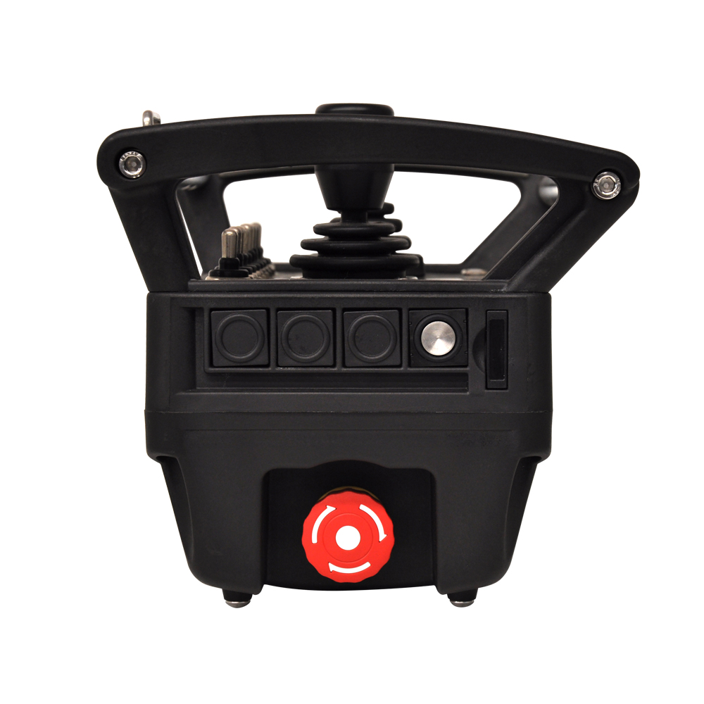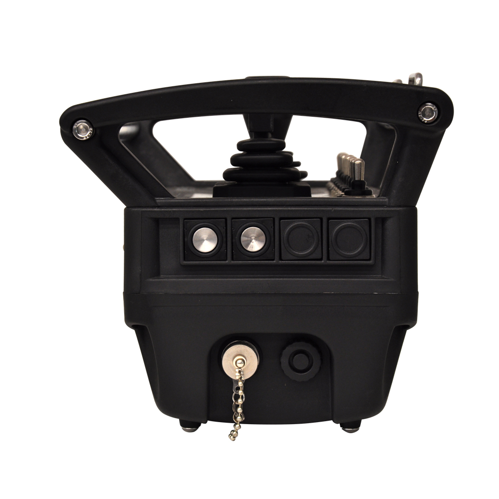 本發(fā)射器可以裝配多個(gè)撥動(dòng)開關(guān)、按鈕、檔位開關(guān)和電位器,可以操作控制各項(xiàng)功能;比如發(fā)動(dòng)機(jī)的啟動(dòng)/停止、加速和減速、聲音信號(hào)以及液壓系統(tǒng)的流量速度控制等。采用高品質(zhì)的操作桿和撥動(dòng)開關(guān),具有良好的操作手感。