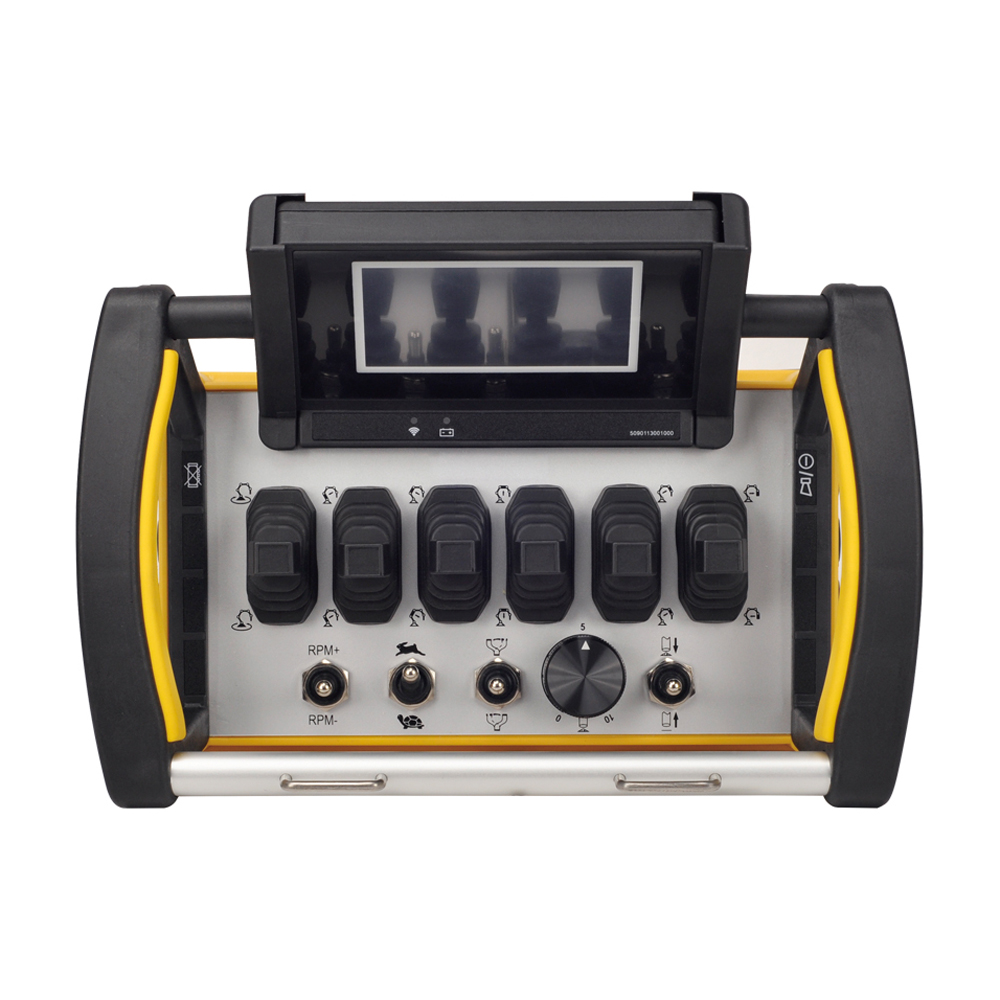 本發射器可以裝配多個撥動開關、按鈕、檔位開關和電位器,可以操作控制各項功能;比如發動機的啟動/停止、加速和減速、聲音信號以及液壓系統的流量速度控制等。采用高品質的操作桿和撥動開關,具有良好的操作手感。