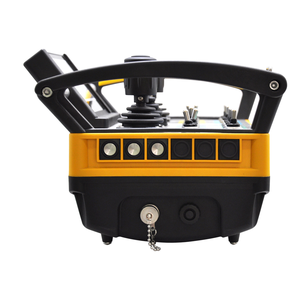 本發射器可以裝配多個撥動開關、按鈕、檔位開關和電位器,可以操作控制各項功能;比如發動機的啟動/停止、加速和減速、聲音信號以及液壓系統的流量速度控制等。采用高品質的操作桿和撥動開關,具有良好的操作手感。